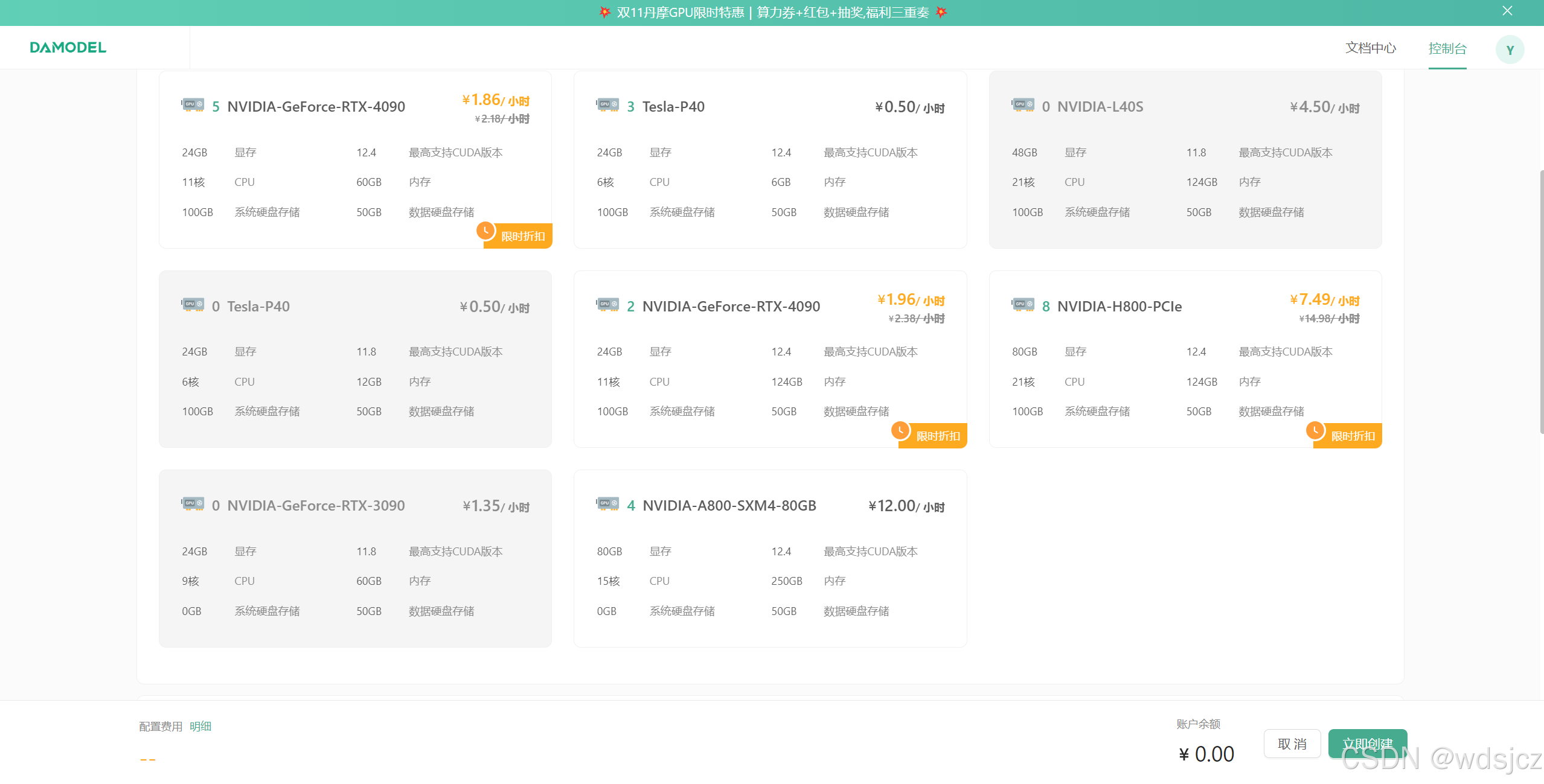 注册成功后,咱们就可以开始探索丹摩智算平台的算力资源啦!从入门级GPU到专业GPU全覆盖,按需付费,包日、包月随你选。而且,平台上还有超多优惠券等你来领,低价畅用GPU不再是梦!