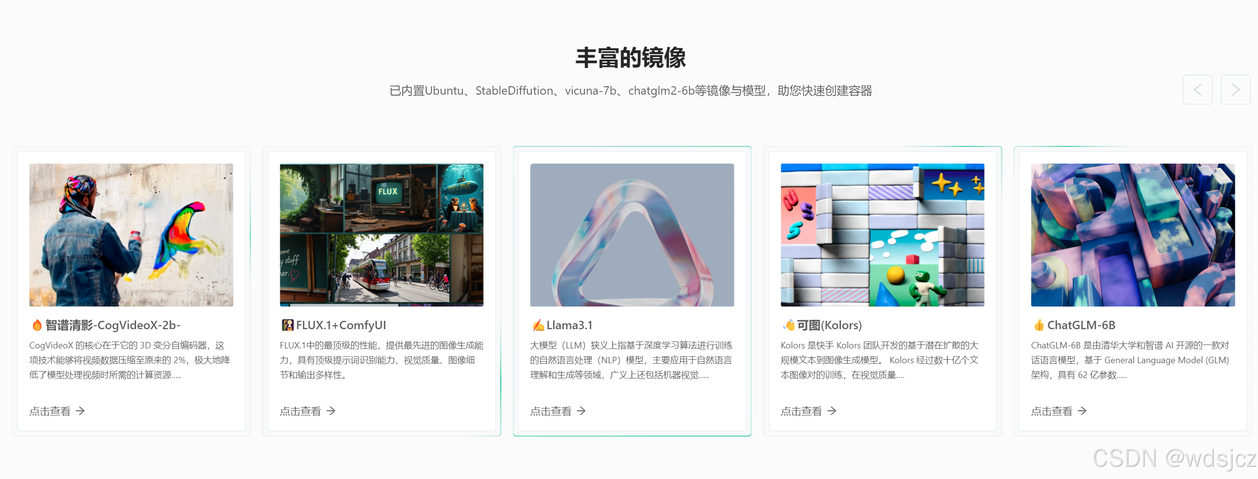 - 资源丰富:内置多种镜像与模型,加速开发进程。